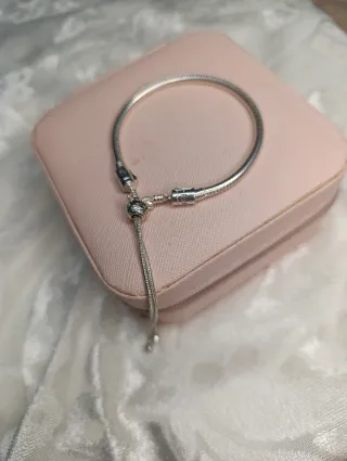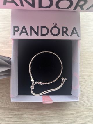 Elegante pulsera de la marca Pandora. - Diseño delicado y ajustable. - Acabado en plata brillante.