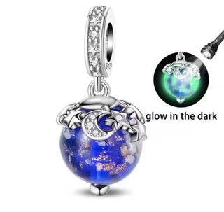 Charm un diseño inspirado en el universo y la luna, diseño de planeta con anillos. Detalle de estrellas y circonitas de colores en la parte superior. Es un charm llamativo porque brilla en la oscuridad✨ Muy detallado, la luna tiene circonitas blancas. Ideal para la pulsera de Pandora y para pulseras similares. De Plata, tiene el sello s925. Cómo regalo acertarás seguro, es un bonito detalle. Sin plomo, sin níquel, es antialérgica, no daña la mano. Tengo más charms en mi perfil. Todo está sin estrenar y a buen precio. Hago envíos :) - Añade brillo a tu pulsera de Pandora o a tu colgante favorito - Adornado con circonitas blancas.