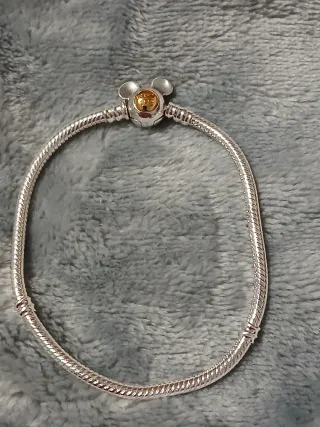 Pulsera con un encantador cierre en forma de Mickey Mouse. Combina detalles en oro y plata para un acabado elegante. Sello 925. NO ES PANDORA. - Cierre con diseño de Mickey Mouse. - Cadena tipo serpiente.