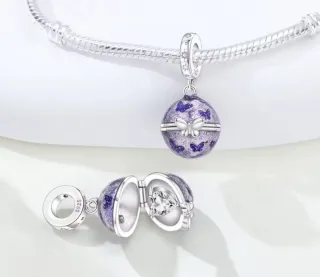 Charm presenta un diseño de mariposas en tonos púrpuras y detalles plateados. Se abre para revelar un corazón de cristal en su interior. Muy detallado, sofisticado. Ideal para la Pulsera de Pandora y para pulseras similares. También se puede poner en un colgante. De Plata, tiene el sello s925. Cómo regalo acertarás seguro, es un bonito detalle. Sin plomo, sin níquel, es antialérgica, no daña la mano. Tengo más Charms en mi perfil. Todo está sin estrenar y a buen precio. Hago envíos :) - Mariposa representa la paz, la libertad, la belleza.. te ayuda a afrontar la vida con una nueva perspectiva + despreocupada y alegre 🦋