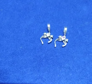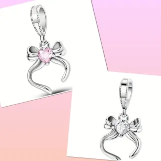 Charms en forma de lazo con un corazón rosa y otro con un corazón blanco. Tienen un baño de Plata. Ideales para la pulsera de Pandora y pulseras similares, también se pueden poner en un colgante. Cómo regalo acertarás seguro, es un bonito detalle. Sin plomo, sin níquel, es antialérgico no daña la mano. Tengo más Charms en mi perfil, todos están sin estrenar y a buen precio. Hago envíos :) - Detalle de lazos con circonita blanca y circonita rosa. Añade un toque de brillo a tu pulsera de Pandora o a tu colgante favorito. - A 14€ la unidad.