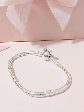 Pulsera estilo Pandora con un charm de Mickey Mouse. - Diseño de cadena tipo serpiente. - Charm de cabeza de Mickey Mouse. - Acabado plateado brillante. Talla 17 cm