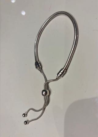Elegante pulsera de la marca Pandora, con un diseño ajustable y acabado en plata. - Diseño tipo serpiente. - Cierre con deslizador para ajustar a la muñeca.