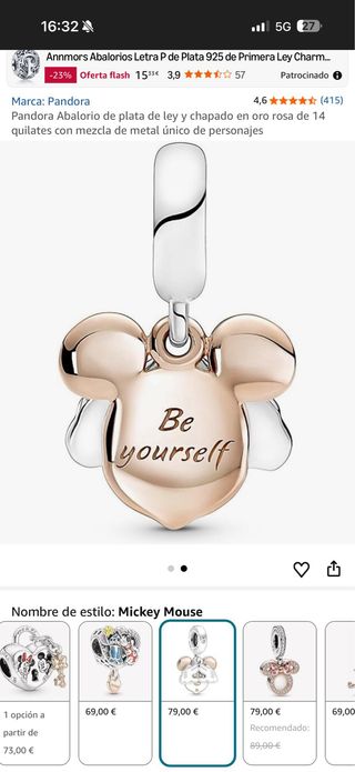 Pandora Charms Mickey Mouse Oro Rosa y Plata