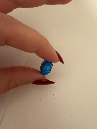 Charm de Pandora con un diseño de ópalo azul vibrante. Añade un toque de color a tu pulsera. - Diseño de ópalo azul. - Detalles plateados con inscripciones. - Compatible con pulseras Pandora.