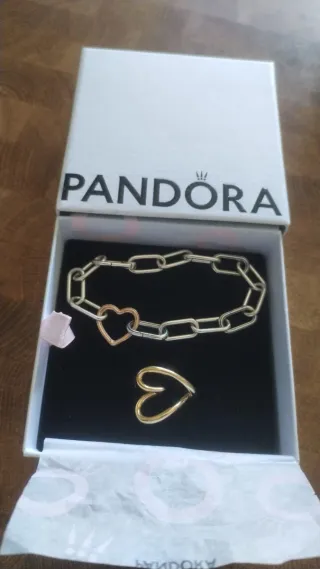 Pulsera y Anillo Pandora Corazón Oro y Plata