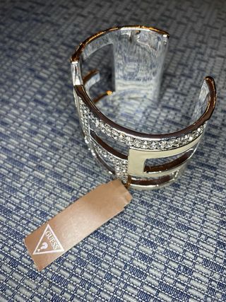 pulsera en blanco, plata y brillantitos Guess rigida con abertura, tipo brazalete