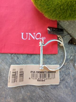 Pulsera rígida de la marca española Uno de 50 modelo Reward de metal bañado en plata con original cierre de palito a rosca. Talla S, para muñeca de hasta 15'5cms. Nueva con etiqueta! También puedes encontrar el anillo a juego de las últimas fotos en mi perfil. Envío a cargo del comprador. No se admiten devoluciones.