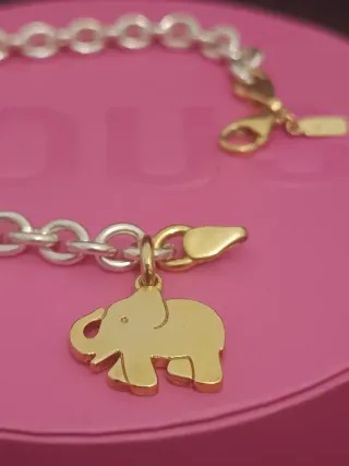 Pulsera de Plata y Cierre y Charms Con Baño de Oro 18Kt Tous. Colección Bicolor Longitud 17cm Motivo Elefante 1.5cm