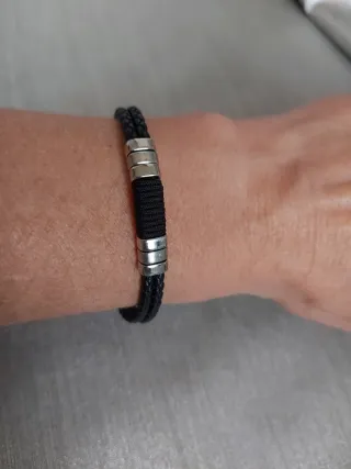Pulsera y colgante plateado y negro