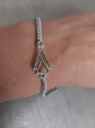 Pulsera con un diseño moderno y elegante, perfecta para añadir un toque especial a tu estilo. - Detalle de dos triángulos entrelazados. - Cordón ajustable para mayor comodidad.