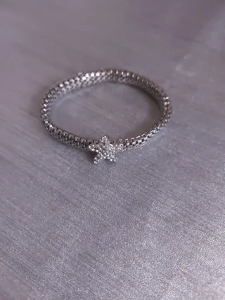 Elegante pulsera con un diseño de cadena y estrella. Elástica - Acabado plateado brillante. - Diseño de cadena tipo malla.