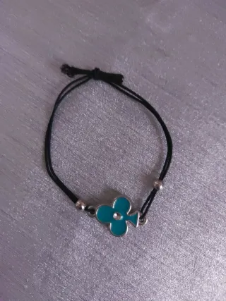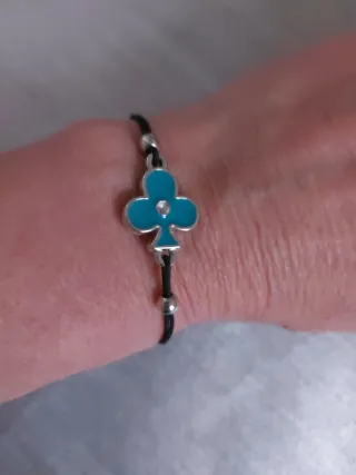 Bonita pulsera con un charm en forma de trébol. - Diseño de trébol con esmalte - Cordón negro ajustable goma