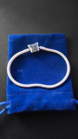 Pulsera de la marca Pandora, con un diseño elegante y atemporal.Se vende porque se me ha quedado grande y me he comprado otra. - Material: Plata. - Cierre seguro y fácil de usar.