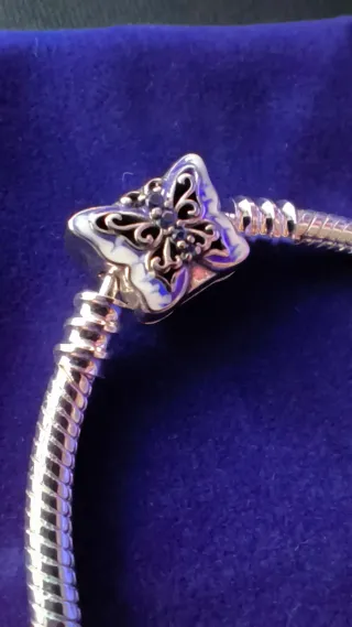 Pulsera de plata de ley 925 tipo snake chain con cierre decorativo en forma de mariposa. ✔️ Compatible con abalorios/charmes ✔️ Plata auténtica 925 ✔️ Cierre seguro y muy vistoso ✔️ Acabado brillante, muy cuidada ✔️ Perfecta para montar tu propia pulsera de charms Estado Nuevo, sin golpes ni deformaciones. 💶 20€ precio NO negociable