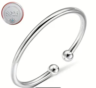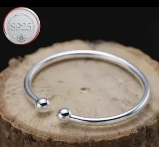 Elegante pulsera abierta con un diseño minimalista y moderno. Perfecta para añadir un toque de brillo a tu día a día. - Fabricada en plata S925. - Diseño abierto con extremos en forma de bola. - Acabado pulido brillante.