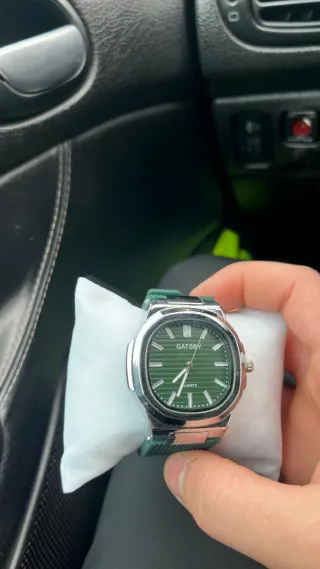 Elegante reloj de pulsera con un diseño moderno. - Esfera de color verde con detalles plateados. - Correa combinada en verde y plateado. - Material de la correa caucho suave a ti alérgenos y esfera de metal inox Se acepta regatear y truques