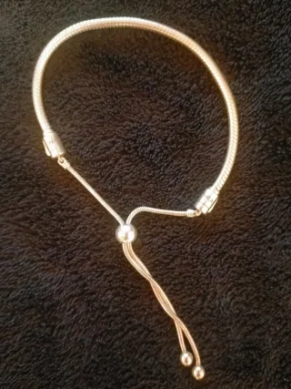 Elegante pulsera Pandora con un diseño ajustable. - Diseño de cadena tipo serpiente. - Cierre deslizante para un ajuste personalizado. - Adornada con pequeñas circonitas brillantes. Muy bien Cuidada.