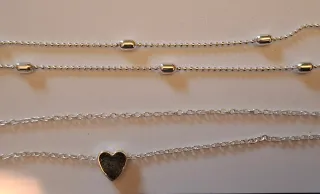 Elegante tobillera en Corazón y gránulos plateados. Pulsera extensible.