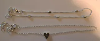 Doble Tobillera Corazón y granulo Plateado