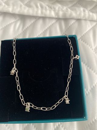 Elegante pulsera de plata 925 con un diseño de infinito central adornado con circonitas de colores. -Mide 20 cm en total. - Diseño de infinito central. - Circonitas de colores. - Cadena de eslabones ovalados. -comprado por 60 euros.