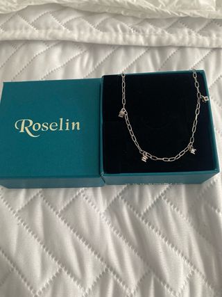 Elegante pulsera de la marca Roselín, elaborada en plata. - Diseño de cadena con eslabones. - Adornada con varios dijes. - Color plateado.