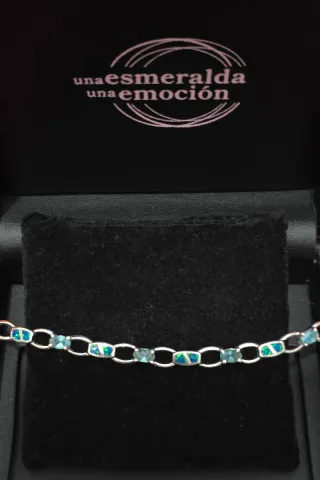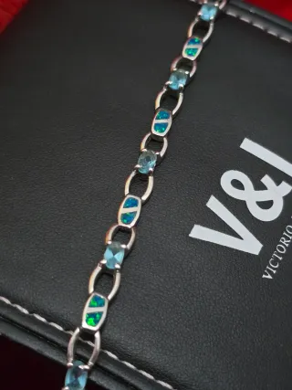 Elegante pulsera de plata con un diseño de eslabones y Ópalo piedras incrustadas en tonos celeste y turquesa Un accesorio que aporta un toque de color y sofisticación. - Material: Plata - Color de las piedras: Azul y verde