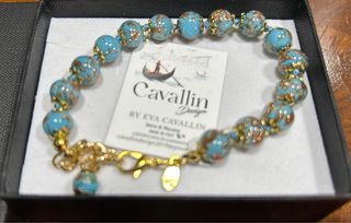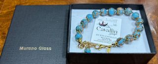 Pulsera original de cristal de Murano, hecha a mano en Italia. - Diseño único de Cavallin. - Cristal de Murano y plata chapada en oro. - Certificado de garantía incluido.