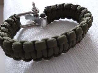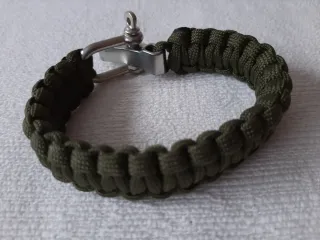 Pulsera de estilo militar con cierre de grillete. 3 medidas. Hombre, caballero, joven.Regalo. - Elaborada con paracord en color verde militar. - Cierre de grillete metálico plateado.