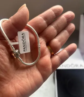 Elegante pulsera de la marca Pandora con un diseño de corazón. - Combinación de plata y oro en el charm. - Estilo serpiente clásico. Vendo.porque me queda grande y perdí el ticket
