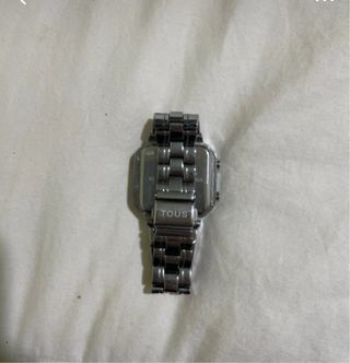 Elegante reloj de la marca Tous con un diseño moderno. - Pulsera de eslabones con motivos. - Esfera cuadrada. - Combinación de colores plata y negro. - Pila recién cambiada