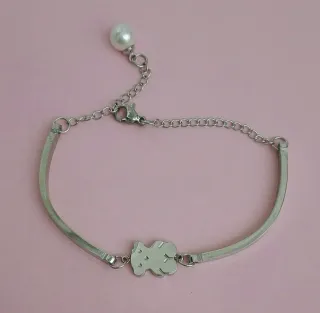 Pulsera color plateada red adorno central osito color negro,brillo,acero, cierre de mosqueton,con cadenita. Precio - 4,80 euros.