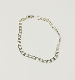 Elegante pulsera de bisutería con un diseño moderno. - Acabado plateado brillante. - Cierre seguro y fácil de usar.
