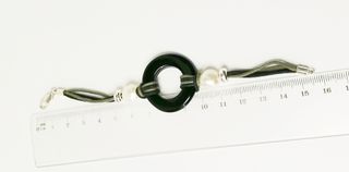 Elegante pulsera con un diseño único. - Elaborada en Plata 925. - Cuenta con perlas barrocas. - Incluye un detalle central de ónix negro. - Cierre de plata seguro.