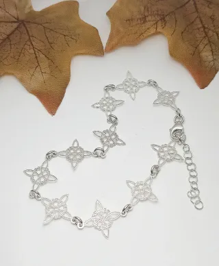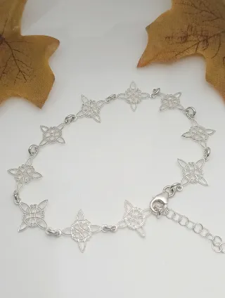 Elegante pulsera de plata con un diseño delicado. - Cadena fina con cuentas. - Colgante de estrella. - Cierre de mosquetón.