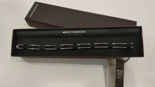 Pulsera de Adolfo Dominguez con un diseño moderno y elegante. - Banda principal en color negro. - Detalle central con franjas plateadas. - Cierre metálico de seguridad. En perfecto estado, sin estrenar, acompañada de su caja. Se puede entregar en mano en El Ejido y Almería capital. También disponible para envío.