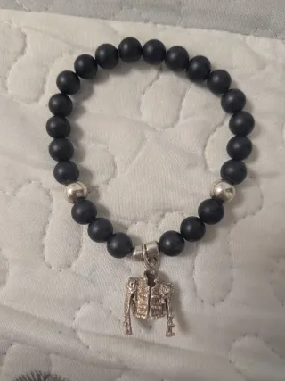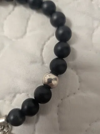 Elegante pulsera con un diseño moderno. - Bolas de color negro mate. - Detalle de dos bolas en plata.