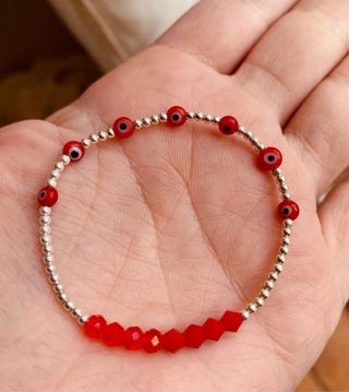 Pulsera elástica con diseño de ojo turco en color rojo y detalles plateados. - Plata 925. - Medida pequeña.