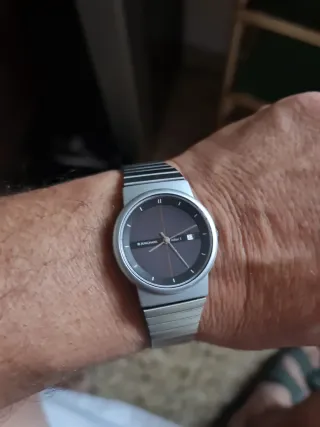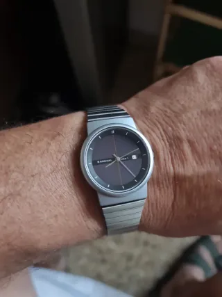 Reloj de pulsera Junghans con diseño moderno. - Esfera de color negro. - Correa de metal plateada.no se baja de precio. No se accepta devoluciones. Va perfecto.