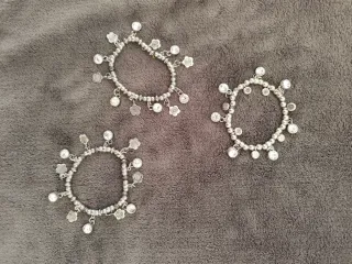Conjunto de tres pulseras con un diseño delicado y adornos. - Cada pulsera tiene pequeños dijes. - Incluye cuentas y detalles florales. - Cierre ajustable.
