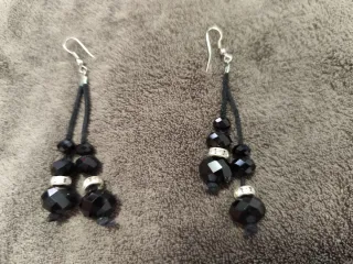 Conjunto pulsera y pendientes piedras negras