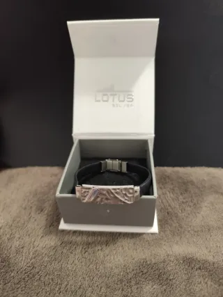 Elegante pulsera de la marca Lotus, con un diseño moderno y atractivo. - Banda principal de color negro. - Detalles metálicos en tono plateado. - Incluye caja original. Sin estrenar - Excelente para regalar