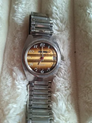 Reloj vintage de pulsera original para hombre de la marca Thermidor. Waterproof, automático, incabloc Señales de uso en pantalla. - Esfera con detalles dorados. - Correa metálica plateada. Ref 1342 Funcionando a la perfección