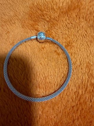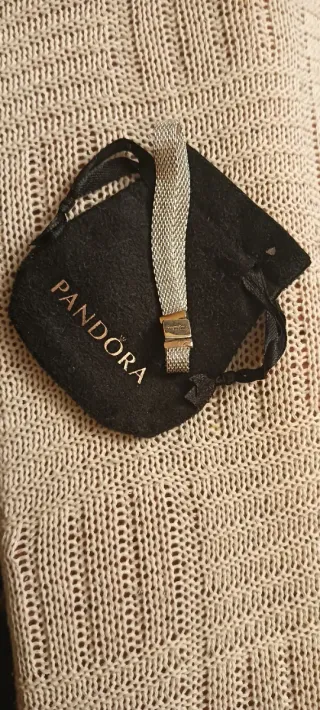 Elegante pulsera tipo brazalete de la marca Pandora. Longitud de 18 cm. En excelente estado y muy bonita. Se envía con bolsita original, pero no tiene caja. - Diseño de malla metálica. - Cierre seguro y discreto.