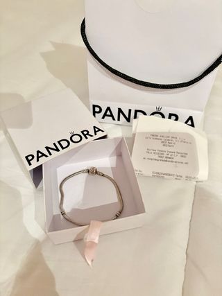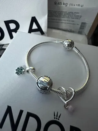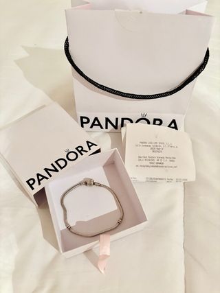 Se vende pulsera de plata de la marca Pandora totalmente nueva, sin estrenar. La pulsera incluye cierre de seguridad y 3 charms con un diseño muy bonito. Es ideal para un regalo, ya que se entrega con su caja, papel envoltorio y bolsa de la tienda. Está en Granada, también hago envíos.