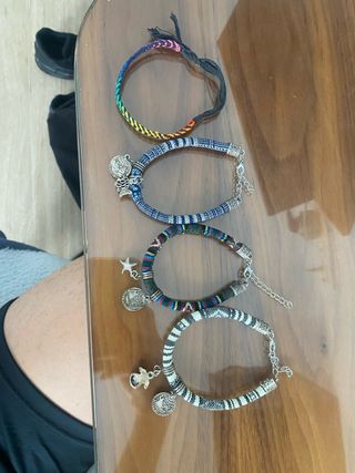 Conjunto de collares y pulseras con diseños variados. - Piezas con detalles plateados. - Estilos bohemios y étnicos.