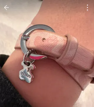 Pulsera de la marca Tous con un diseño encantador. - Detalle de oso. - Combinación de tonos rosas y plateados.
