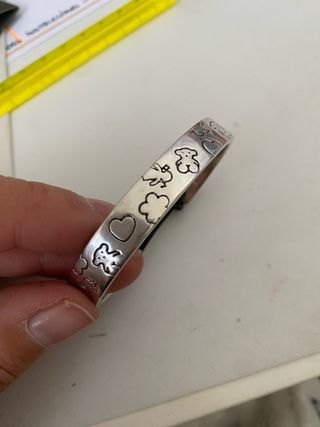 Pulsera de plata de ley con un diseño precioso. - Grabados de corazones y ositos de tous y más. - Estilo abierto y ajustable con cierre muy cómodo.