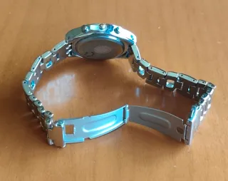 Reloj de pulsera con un diseño elegante y moderno. - Brazalete de eslabones metálicos. - Caja cuadrada. - Cierre de seguridad.