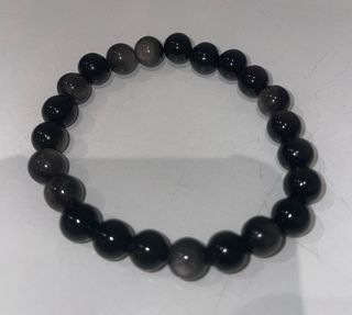 Elegante pulsera elaborada con cuentas de obsidiana plateada. - Protección intensa y energía estabilizadora,ayuda a liberar bloqueos emocionales.Ideal para uso diario.Elastica. - Tamaño de las cuentas: 8mm. - Diseño con cuentas redondas y brillantes.